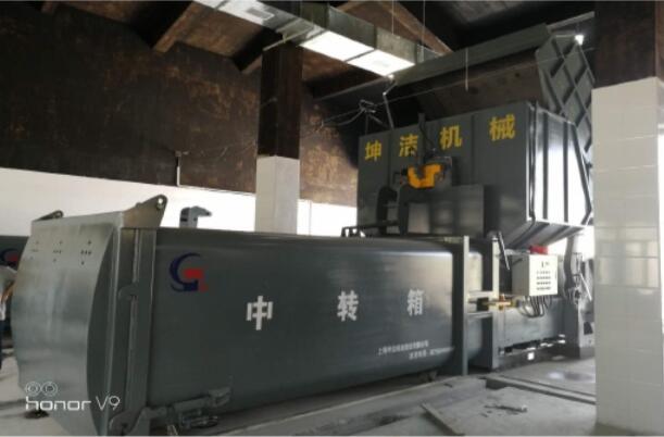 ”前進后出式”中轉站布置是采用了- -種特殊設計的“前進后出”垃圾集裝箱,該箱體改變了傳統的集裝箱結構形式,是在拉鉤的一側設計了垃圾進料口,本公司獨特的拉鉤可上翻式結構 ,使前進后出式中轉站的垃圾壓縮機同普通中轉站的壓縮機相互通用,而且進料口維持在.上部位置,確保箱體有效裝滿。